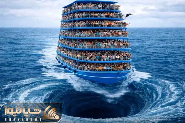 شاهد کلیپی ساختگی از کشتی مسافربری هستید که با هدایت اشتباه کاپیتان به گرداب رسیده.