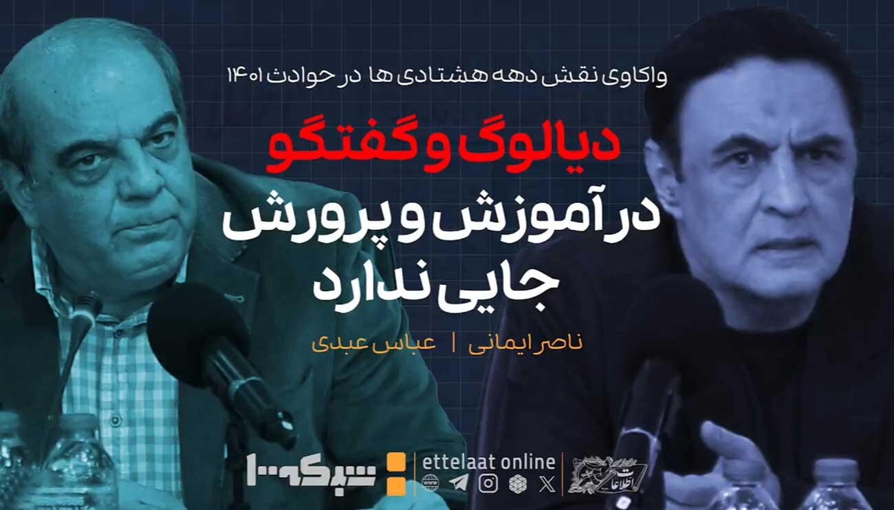 در نشست واکاوی نقش دهه هشتادی‌ها در حوادث ۱۴۰۱ مطرح شد: دیالوگ و گفت‌وگو در آموزش و پرورش ما جایی ندارد. این نشست با حضور ناصر ایمانی و عباس عبدی در موسسه اطلاعات برگزار شد.
